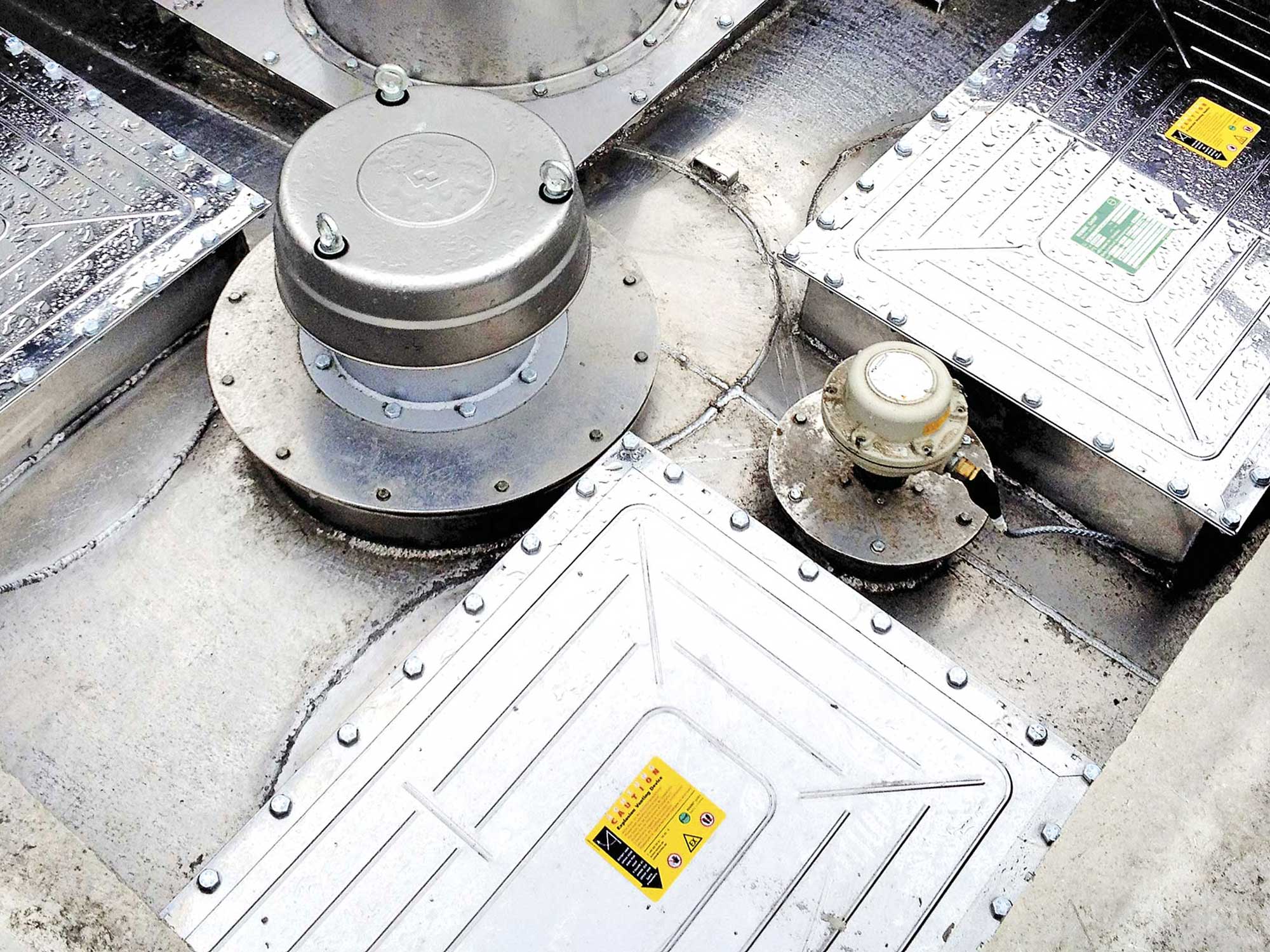 Roof-mounted deflagration venting as the most economical solution.